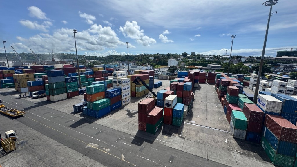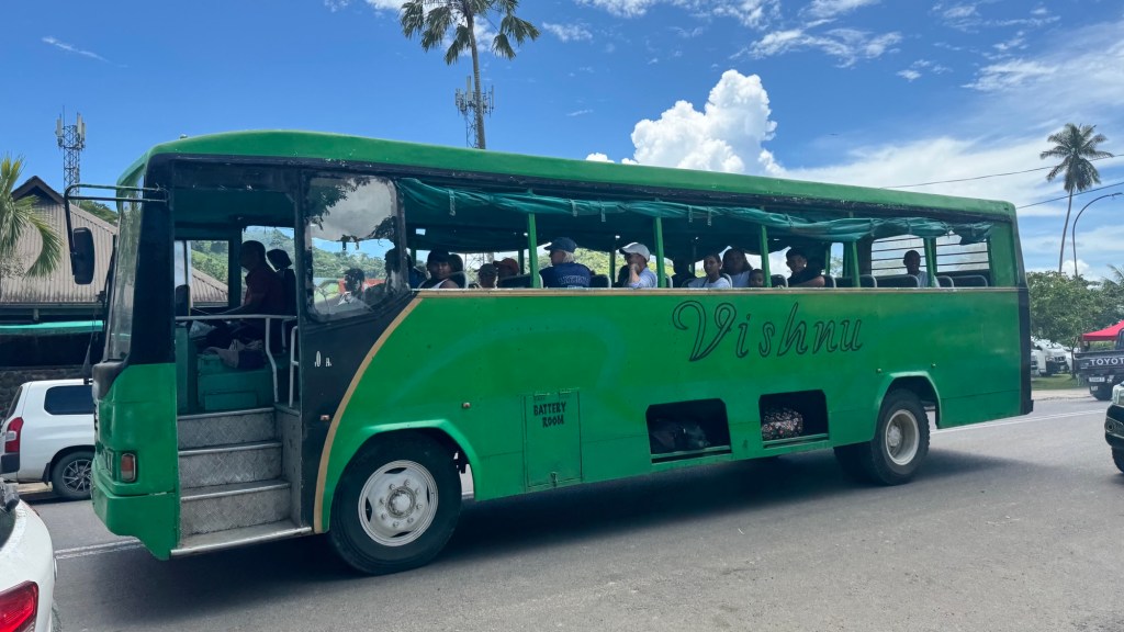 Although the distance from Lautoka to Suva is not far, cruise ships manage to still arrive after sunrise with time to spare to get all the shore furniture ready for guests to disembark soon after breakfast. Our docking point in Suva is at a container wharf with shipping containers stacked up to 7 high. Next door is the central Suva bus station. Buses are the main public transport system for Fiji.