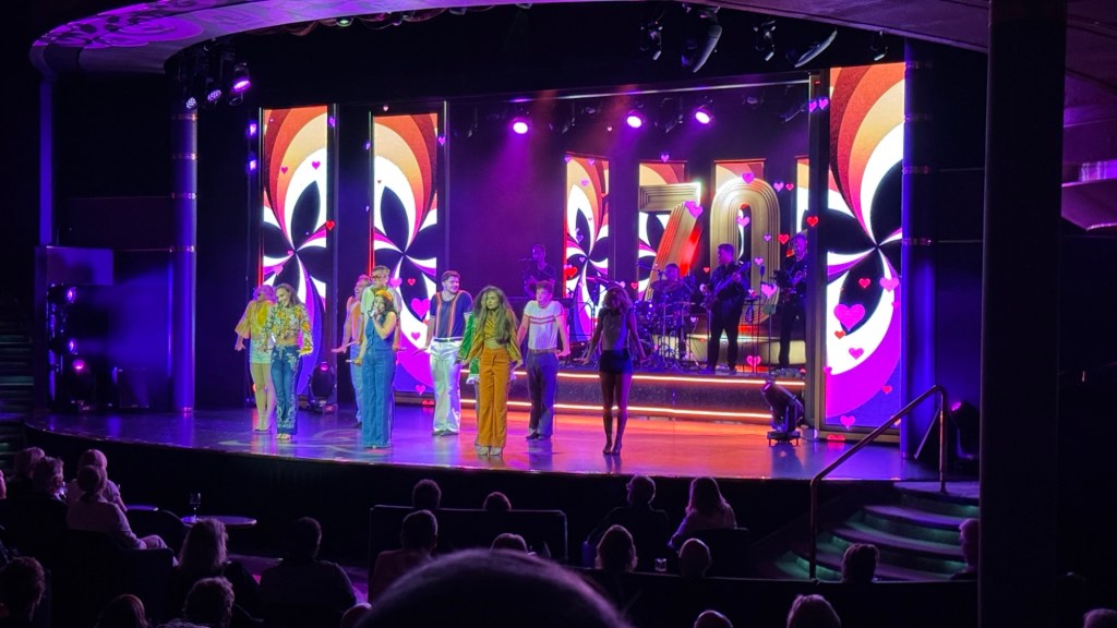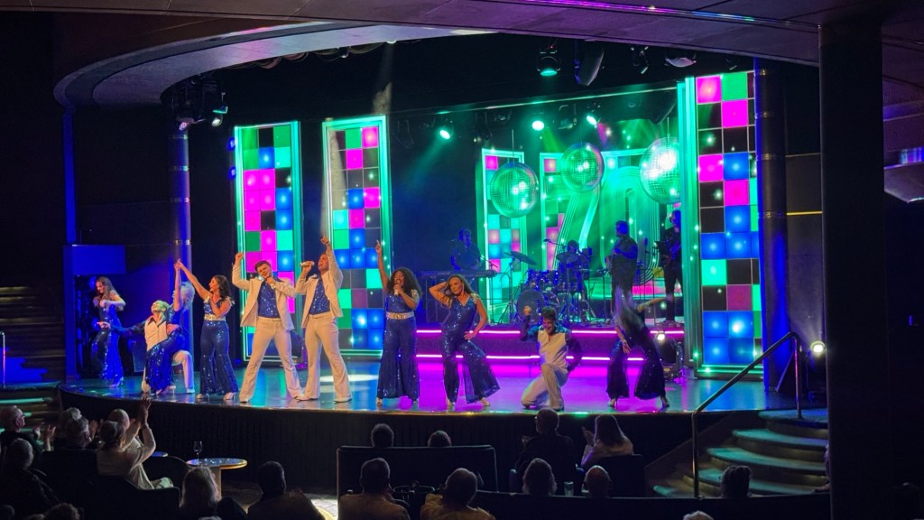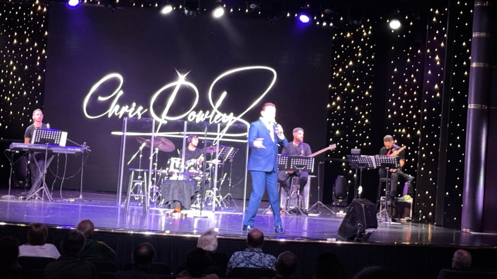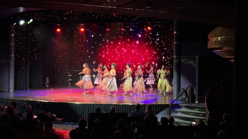 The entertainment has been varied through the cruise with a request to not film the shows. I managed to get a shot of the last scene last night (naughty naughty).