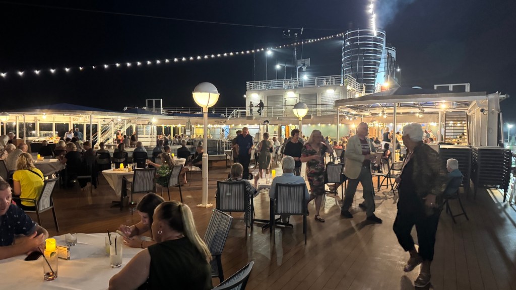 On board, is a couple of friends from nearby Yarra Junction. We haven’t traveled with them in the past and they are less experienced cruisers. Our dinner time was spent with them going through “what happens on a cruise to fill in a day”and how to use their phone in accessing the ship’s app, features of the ship and the daily program. (They are disembarking in Auckland).