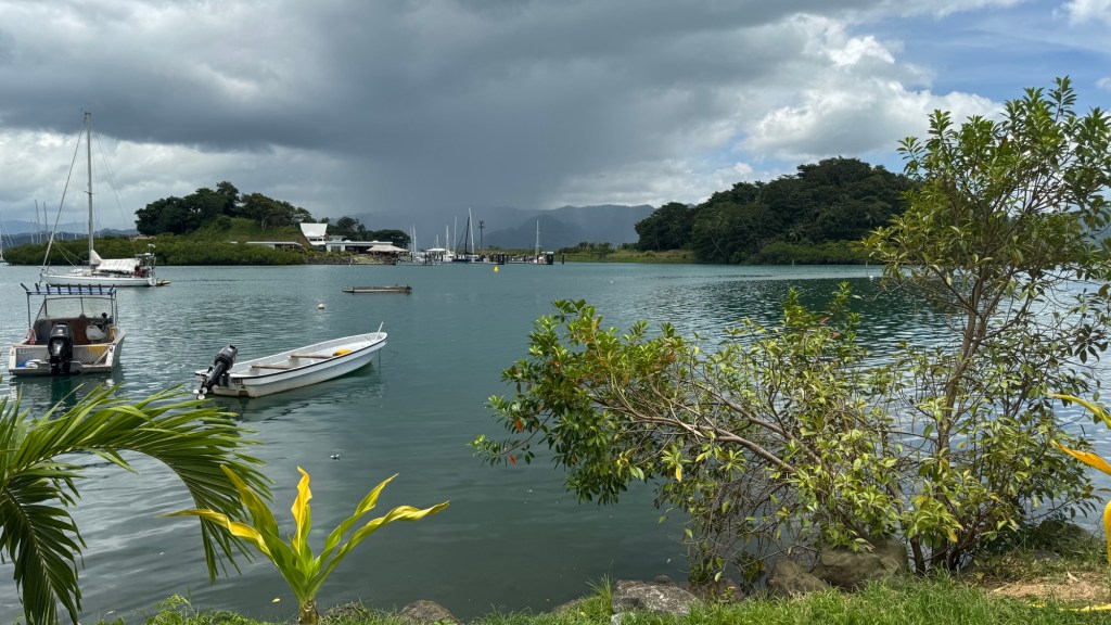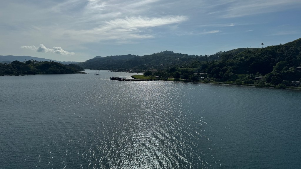 With the adjusted schedule, our arrival through the reef was in daylight around 3pm with a “tie up” around 5:15pm. We are in Fiji now.