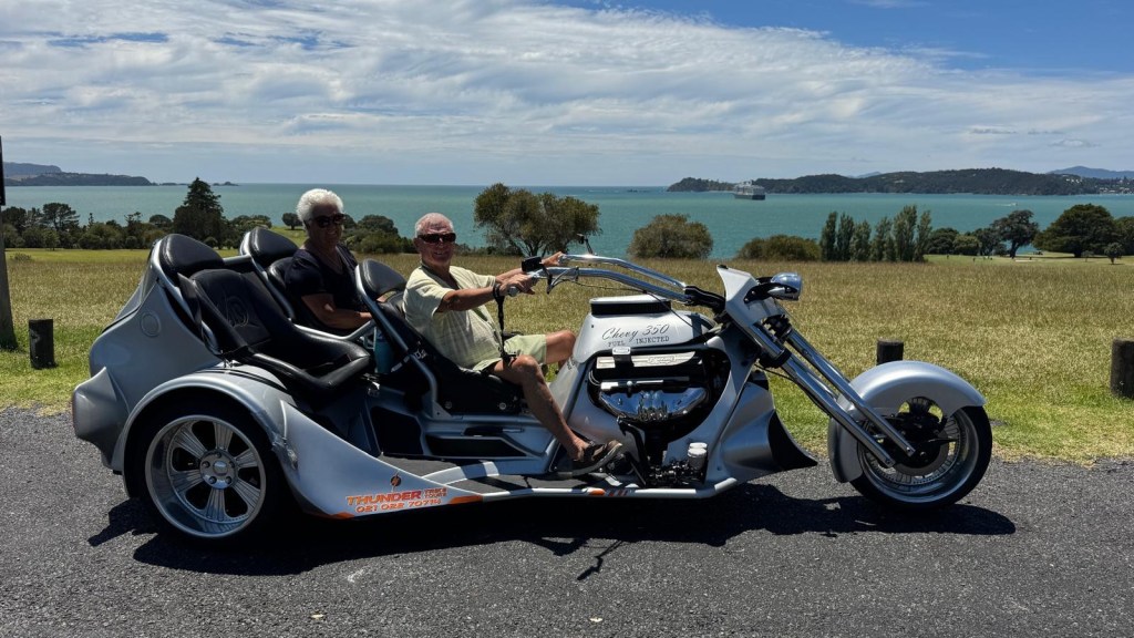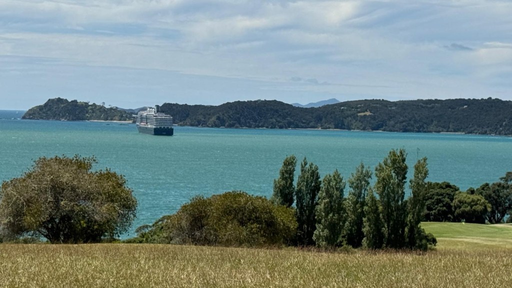 Just after the ride, I had a freak accident and was transported to Whangerei Hospital to have a CT scan on my head and upper body. I’m ok – now. We were under a large umbrella at a bus station and a bus hit the umbrella which sent the other side of the umbrella harpooning to the back of my head. I was knocked out and flat on my back on the ground. After the ambulance came they transported Lyn and I to Whangerie hospital about 90 minutes south. After a CT scan, and a good “going over” the doctor gave us the ok to leave the hospital and return to the ship. We then had an overnight at a motel followed by a 2 and a half hour transfer by car on to Auckland. We rejoined the Noordam two days later in Auckland.