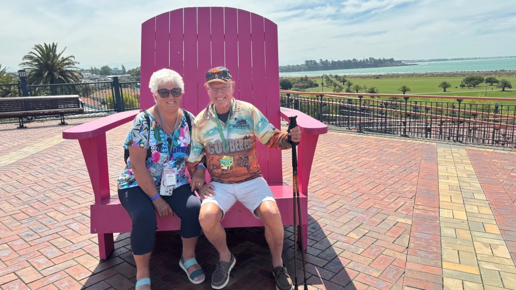 Tauranga presented us with a BIG surprise. In Honiara, we had checked the travel agency where Lyn worked in the late 1980s. We were hoping to meet up with Ane. However, we had no information that Ane had moved. Lyn had made previous contact with Don, the boss from the Honiara travel agency, and he met us at the ship to take us on a tour of Tauranga. He has, pre Covid, built his travel agency group in Tauranga so there was a lot of talk about travel and destinations. We dropped by his home and when we walked in, a dark lady was sitting in shadows in the lounge. It was Ane from Honiara who now lives nearby. What a surprise!