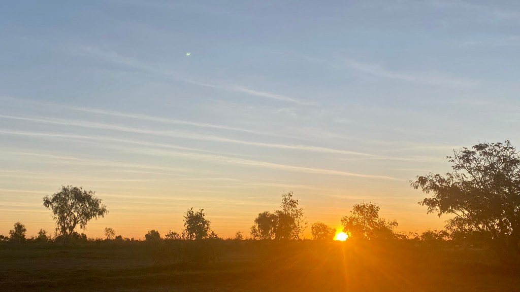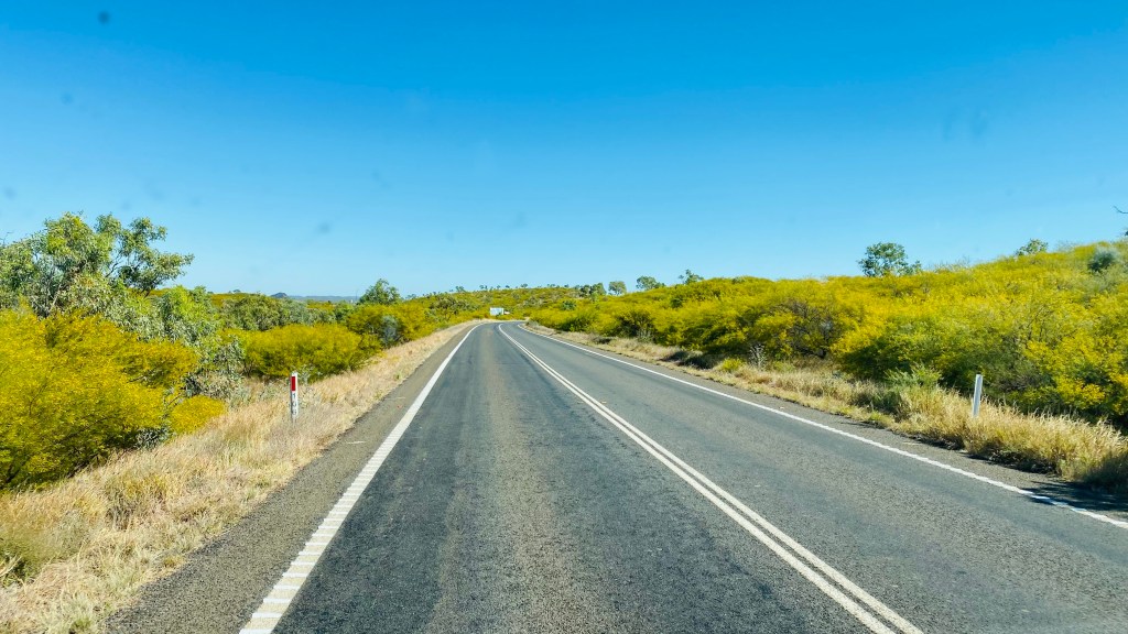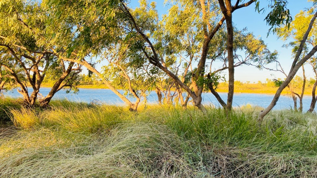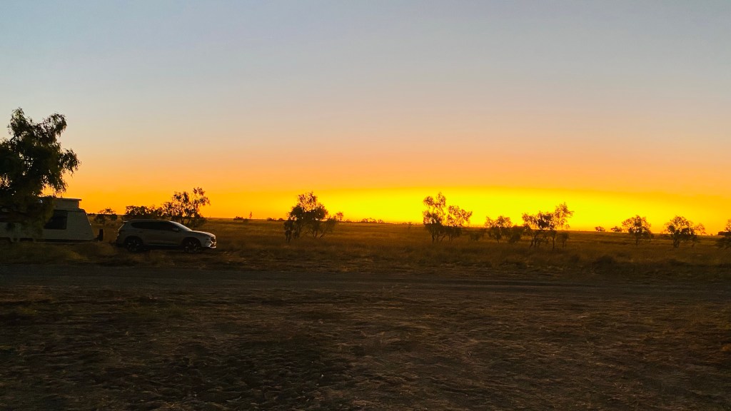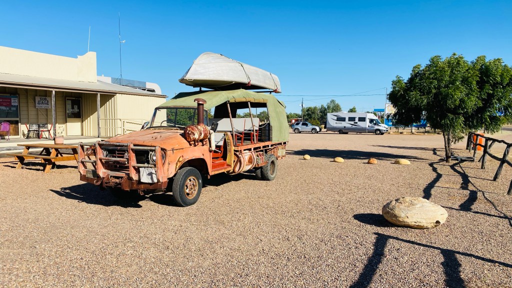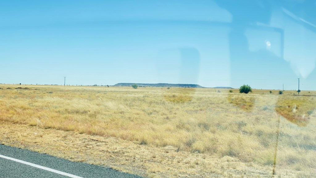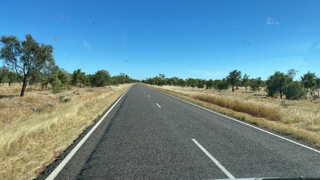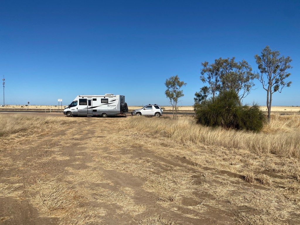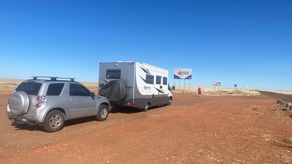 As we are away from the bouncy Queensland roads now, we can motor along without all the crockery and saucepans doing a dance while we travel. Yes, more open space with no trees above grass height still. I couldn’t work out how the demarkation between the two states were made decades ago; no sign of a river or border police until we further down the highway a bit when up popped a couple of border police at a roadhouse; we kept low because we haven’t obtained entry visas to the Northern Territory for our holiday.