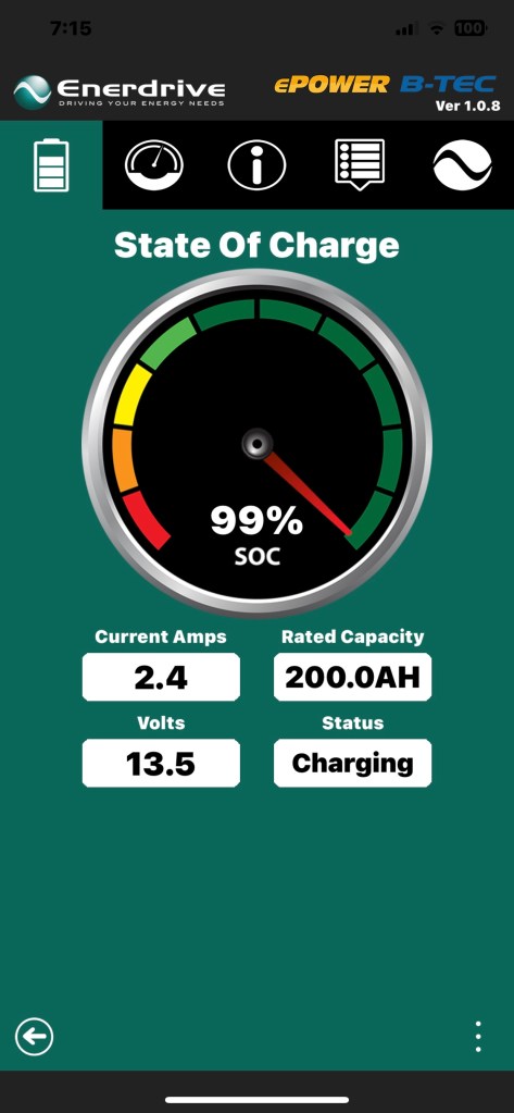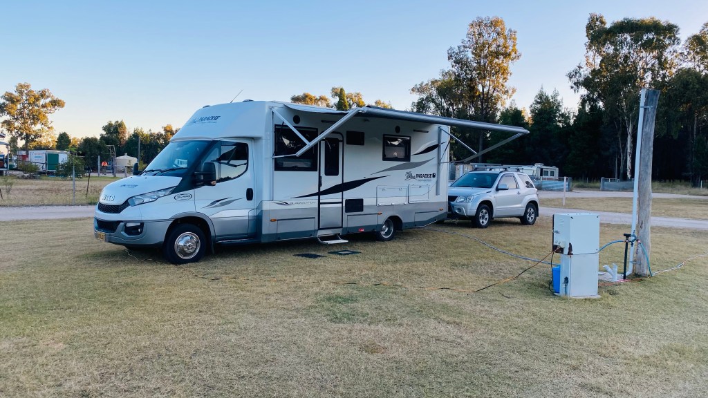 To further test the new lithium battery, we chose to be safe at a GDay caravan park but not use their power or water. The battery went down to 62% and has come back to 94% while heading north to Darwin.