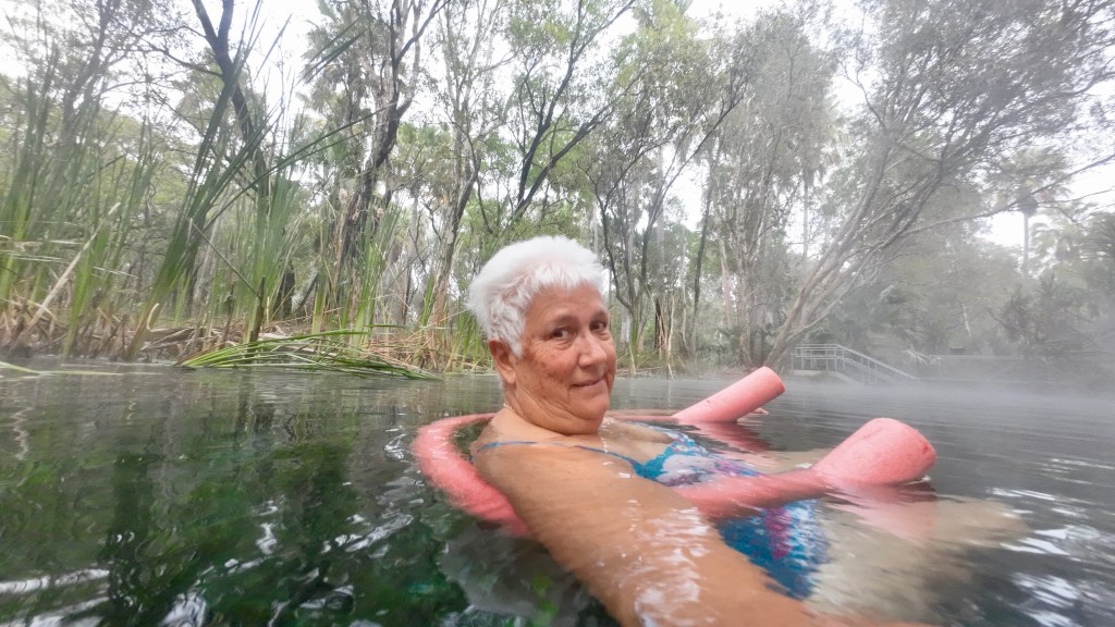 Our stay was a great rest and rejuvenating time. Amazingly, after the first swim in the springs, my balance problem has been helped tremendously. The walking poles still come out at night but I feel more confident in the daytime without them. We made the one kilometre trek 8 times with three of them around 8am in the morning. You MUST stay if ever you travel through the area.