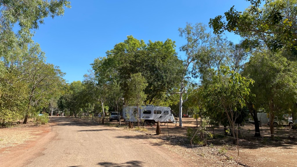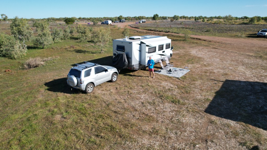 The highway north from Katherine was showing us more what civilization provides in the Territory; with small portions having divided carriage ways. We have arrived at our site which we will use as a base to visit touristy regions and souvenir shops with a strong local flavour during the next month or two. Stay tuned for more “boring” blogs from me. Oh yes, there have been a few comments that basically say that the last blog was a “great read”. I’m not sure who the translator was but thanks anyway.