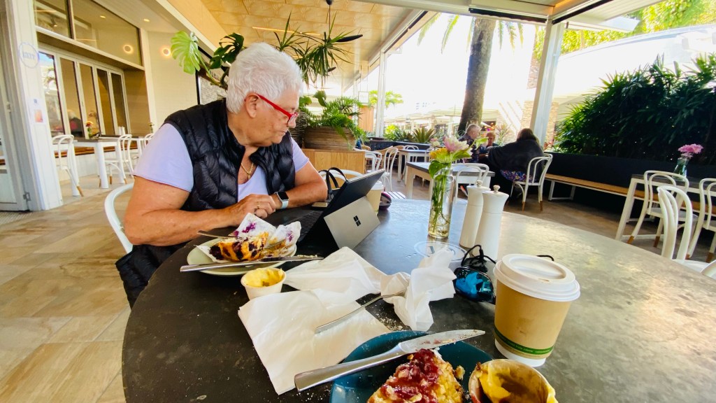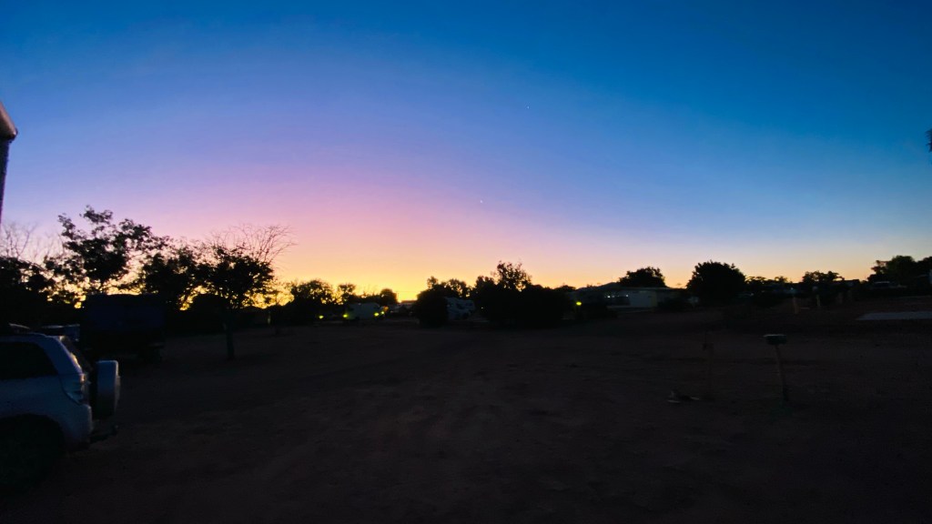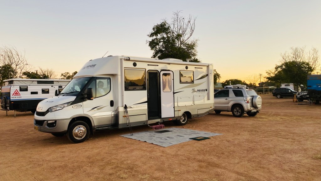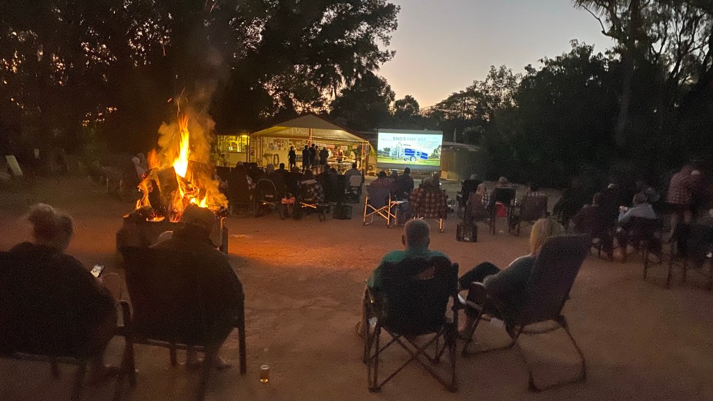 As we were setting up on our arrival, a couple were walking past our site. The woman called out “Lyn Mitchell”. After a “who’s this” look from Lyn, she realised it was Carolyn from her boarding school days – another proof moment that we haven’t aged, too much. Together with husband Peter, they were doing the lap sort of, well across to Perth, up to Darwin and down the center and home to the Lake Macquarie region. They left the day after as the 1st Sate of Origin game, had to be seen on the big screen at the campground before their departure.