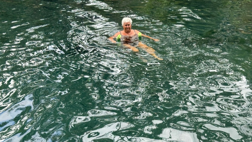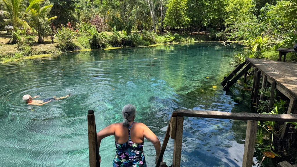 Our excursion to the blue holes took us along country potholed roads for 45 minutes. The water was blue and crystal clear. We were in a group of 20 – 30, some swam and even Lyn had some time in the cooling water.