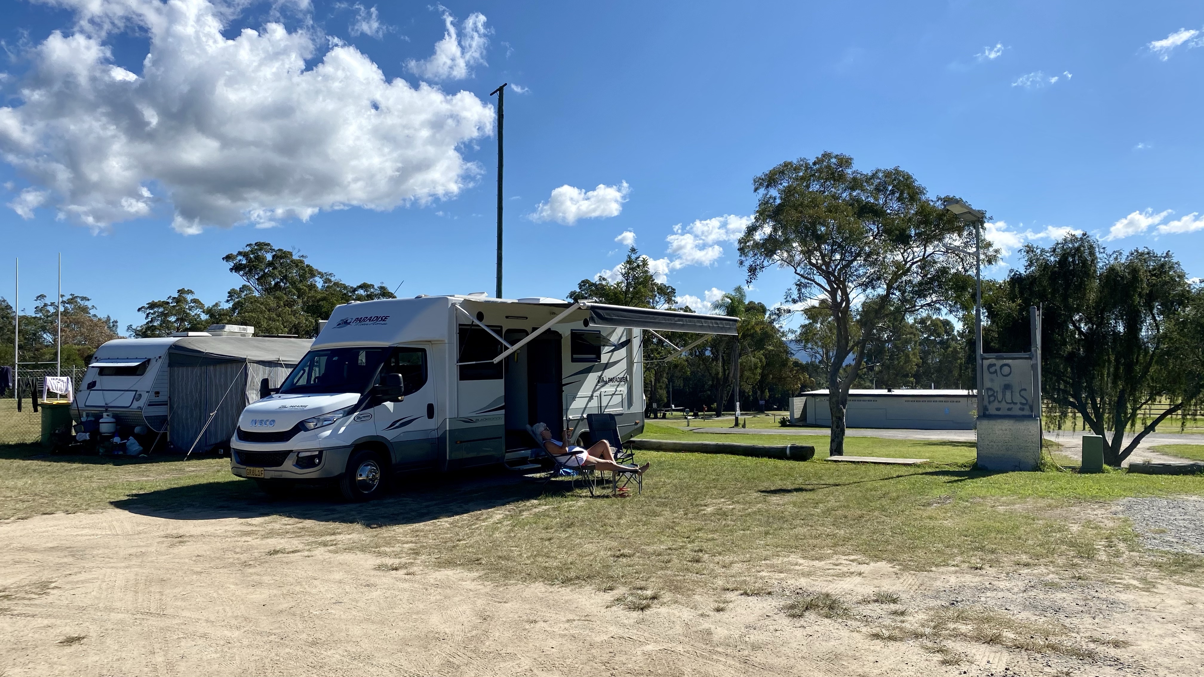 Buladelah free camp is a Lions Project to allow nomads to stop over for the night or sometimes two. There has been a donation box but that was missing this visit. The town pub hosts a lot of the nomads for evening meals.